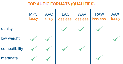 - Qualità del suono migliorata: in AAC rispetto a FLAC, poiché FLAC non comporta alcuna perdita di dati audio, fornisce audio di qualità superiore rispetto ai formati con perdita come AAC.