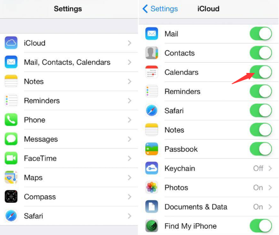 Seleziona Impostazioni> colpisci "IL TUO NOME"> disattiva iCloud per C alendari. In pochi secondi, riaccendi l'interruttore. Funziona a meraviglia se il problema non è collegato al tuo Mac o iPhone. Questo approccio aggiorna la piattaforma iCloud e ripristina le impostazioni predefinite.