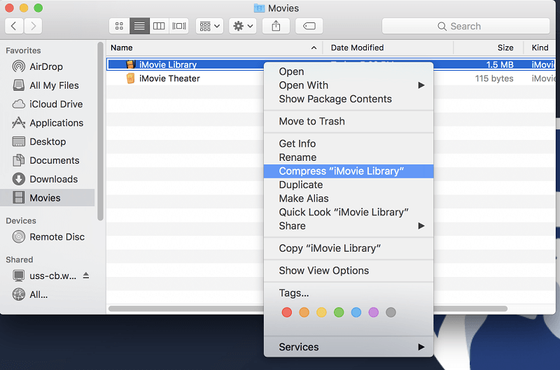 Nota: Non fare doppio clic sul file, altrimenti verrà riavviato il progetto costringendoti a uscire di nuovo da iMovie. Questo è l'oggetto che vorresti spostare tra il tuo disco rigido e il computer.