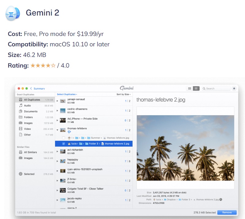 Impara in questa parte di Cisdem Duplicate Finder e Gemini 2, che ha più vantaggi che svantaggi.