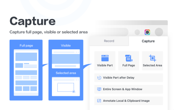 Un'altra opzione da considerare su come fare screenshot sui laptop MSI è Fantastico registratore e screenshot dello schermo. Questa è un'estensione del browser che può funzionare come strumento di screenshot e registratore dello schermo allo stesso tempo. È facile da usare e non devi preoccuparti delle pubblicità perché è completamente privo di pubblicità. Dopo l'acquisizione, è anche possibile la condivisione istantanea e il salvataggio dei file di output su un disco locale o un account online. Sono disponibili anche strumenti di annotazione e modifica.