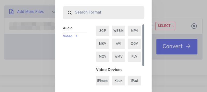 - Dopo di che, scegli il formato di output vuoi dalla lista